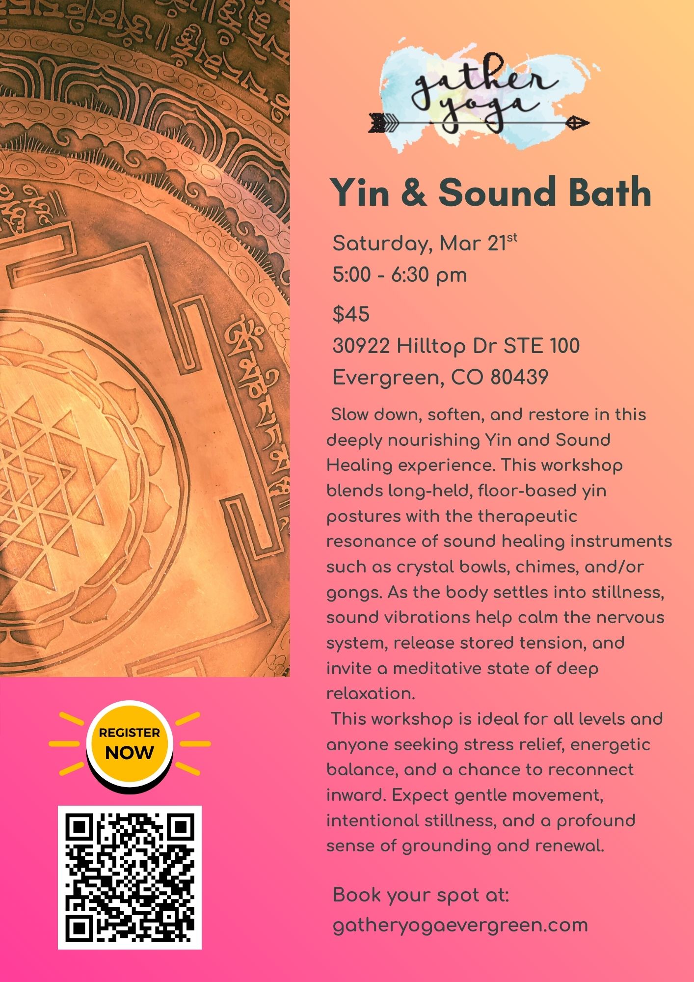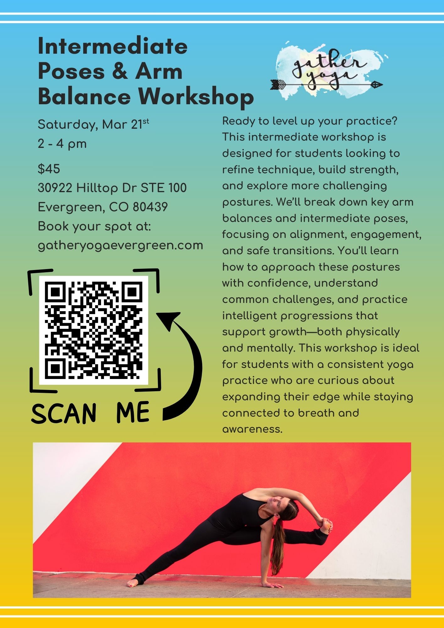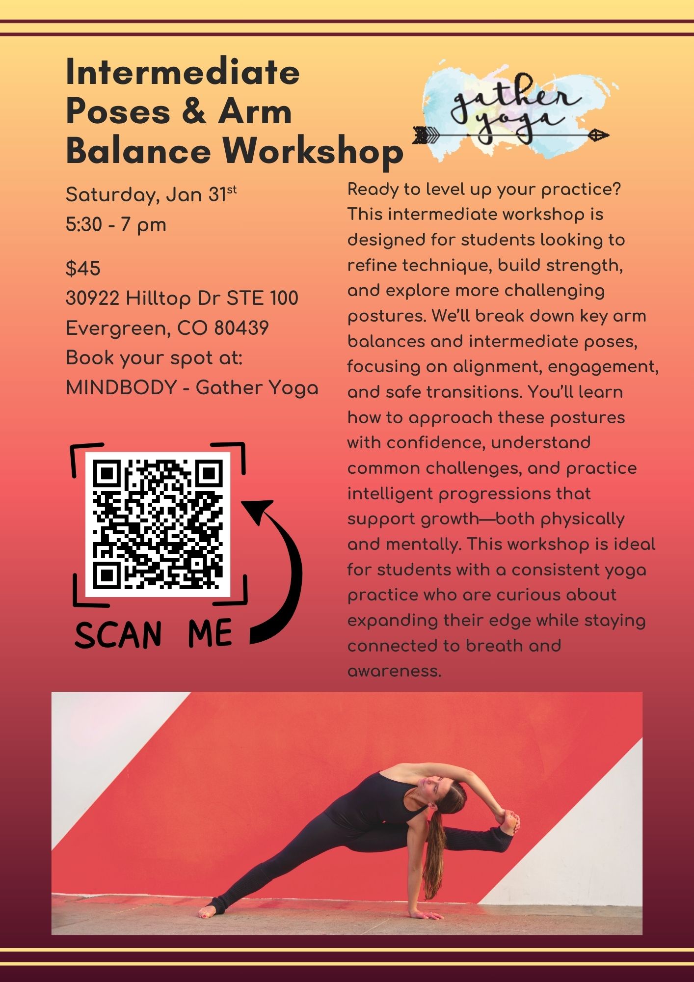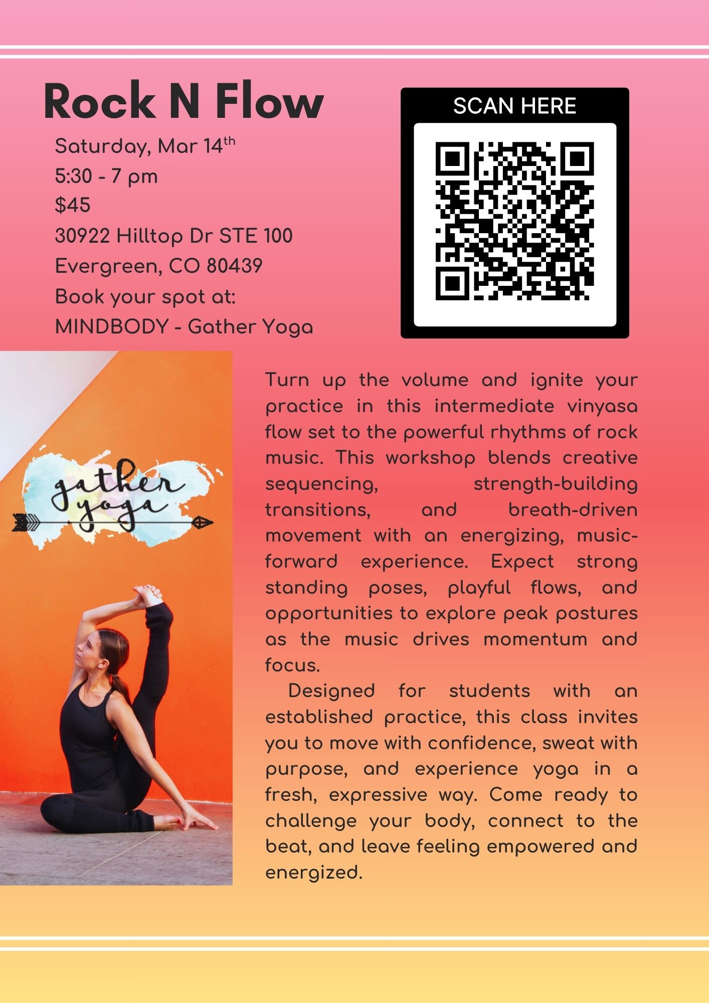 Gather Yoga and Wellness strives to connect the existing community and newcomers to the community through yoga practice, workshops, training and community engagement. Gather Yoga and Wellness offers all levels of yoga classes and encourages each student to grow their practice and enhance mind, body and spirit.